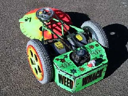 Weed Whacker was a middleweight robot built by Team Circuit Breaker which attended Season 5.0 of BattleBots. It was a green robot armed with a very powerful horizontally-spinning 16" diamond-tipper flywheel, but it was very high and really struggled to hit wedges and low robots. However, before its first match, the team was expelled due to safety and security violations and thus Weed Whacker never fought. Despite this it did compete in the first Steel Conflict losing twice, and the SouthWest Division Championship winning one fight and losing the other.