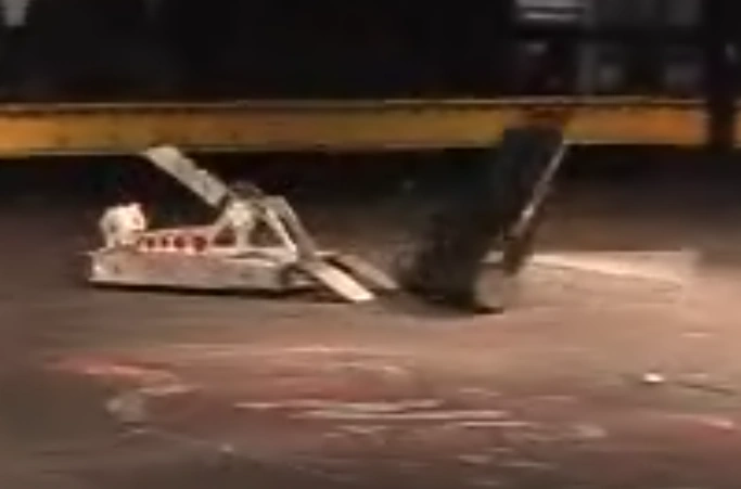 This put Wipe Out #2 in the semi-finals where it faced Goosfraba Steel, this match started with Goosfraba Steel attempting to get around to the side of Wipe Out #2, while initially successful in this Wipe Out #2 escaped Goosfraba Steel's grasp, and delivered a flip. Goosfraba Steel quickly righted itself, and rammed Wipe Out #2 into the wall. Wipe Out #2 then slammed into Goosfraba Steel multiple times attempting to flip it, eventually succeeding in doing so twice. However Goosfraba Steel recovered on both of these occasions, and proceeded to get under Wipe Out #2, but failed to do anything with it. Wipe Out #2 then flipped Goosfraba Steel for a fourth time, but once more it recovered, but Wipe Out #2 then flipped it again. This time Goosfraba Steel was in a position from where it could not self-right with the modifications made to it, and finished the fight upside-down. The judges declared Wipe Out #2 the winner.