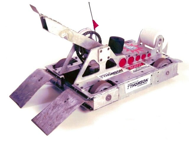 It was a four-wheeled, box-shaped robot armed with an electrically powered flipping arm which could be swapped out for a solid wedge for fighting spinners. Wipe Out #2 did well in competition, becoming the runner-up of the NPC Charity Open and losing only to Goosfraba Steel.