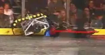 Wrath vs. Paralyzer Wrath slams Paralyzer Pete into the spikestrip. Wrath rams Paralyzer Pete into the spikestrip near the entrance ramp. Wrath's first ever match in BattleBots was against Paralyzer Pete. In this match, Wrath slammed and rammed Paralyzer Pete into the spikestrip many times. Wrath won the match on a 37-8 judges' decision and moved on. |